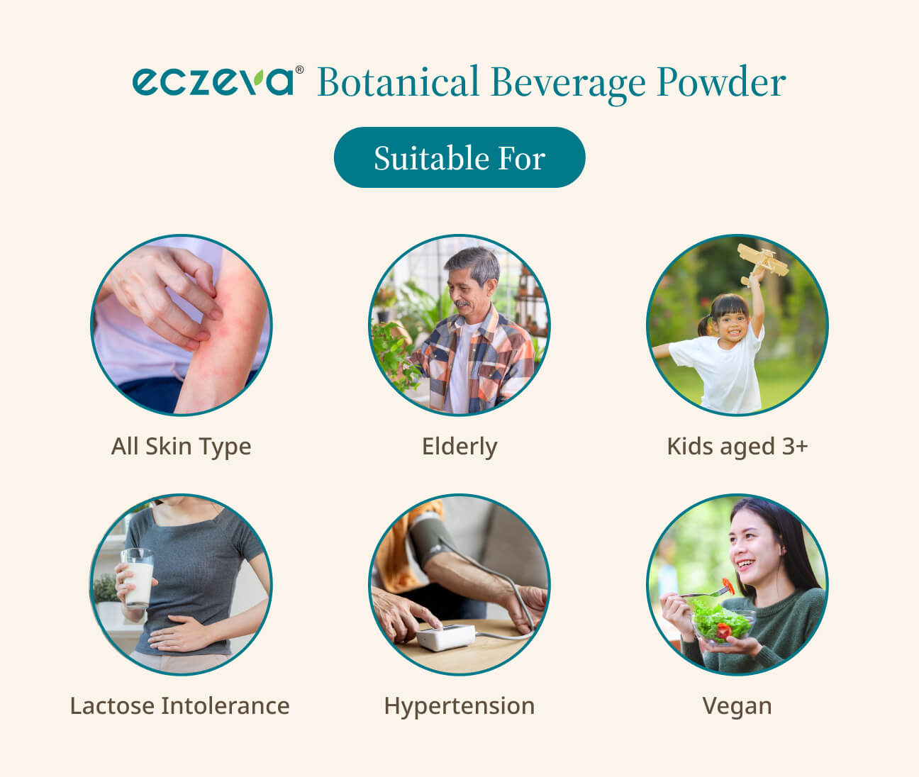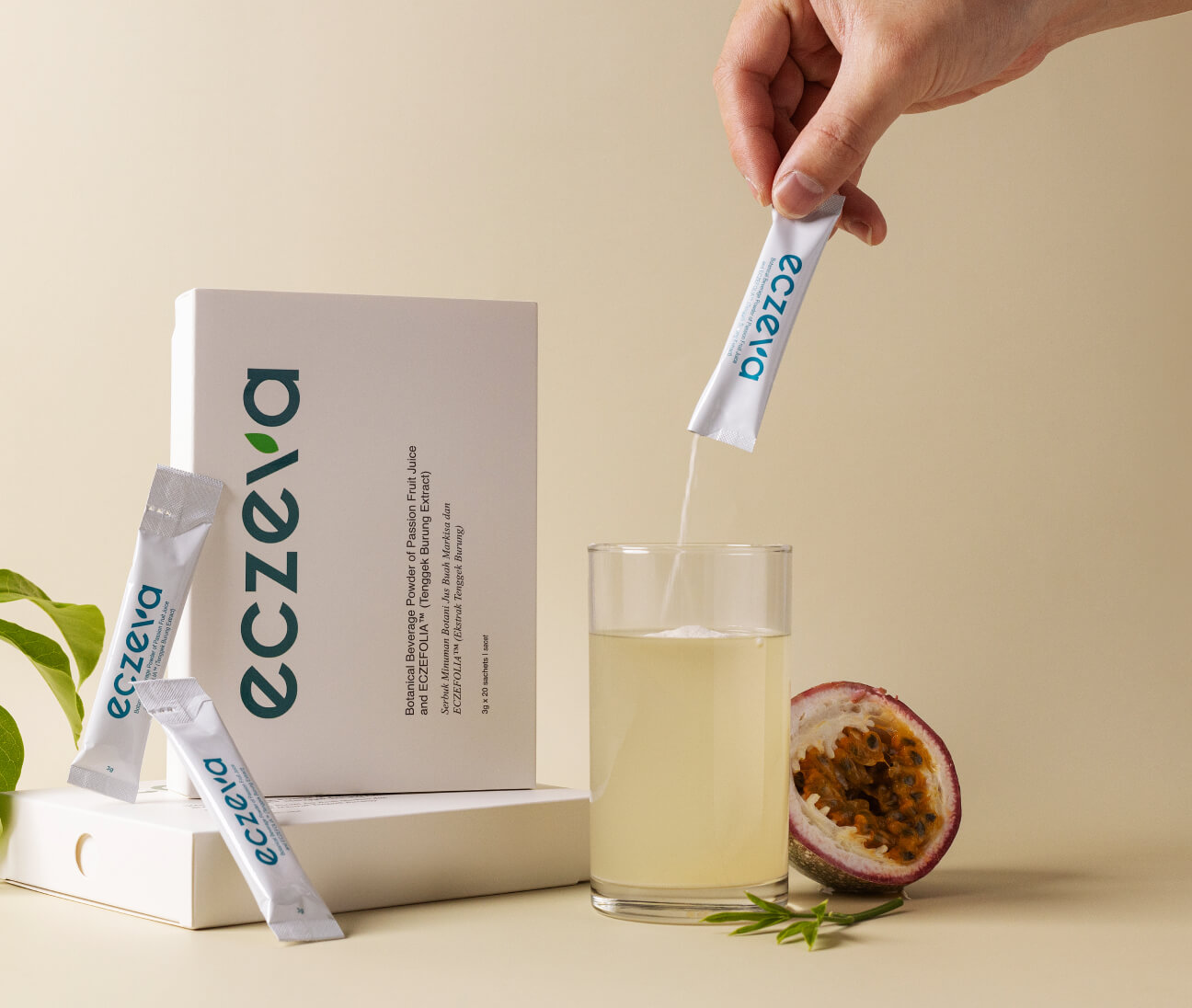 Plant-based oral solution clinically designed to stop allergic reactions, calm eczema, ease sensitivity, and strengthen your skin barrier.